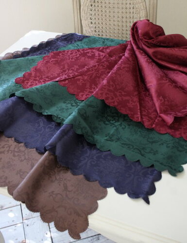 テーブルクロス ダマスクローズ(スカラップ) 撥水 はっ水 薔薇 ジャガード 長方形 135×240 レターパックOK