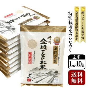 【送料無料】特別栽培米コシヒカリ(玄米)真空パック 10kg(1kg×10袋)令和元年産 家庭用精米機OK 玄米食OK全国・米食味コンクール金賞受賞米 平成13年皇室献上米【39ショップ】